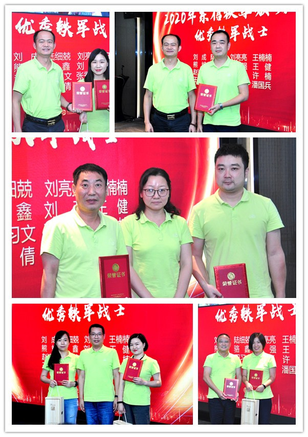 “東信知行商學院”表彰了榮獲“2020上半年東信鐵軍目標落地訓練”優(yōu)秀鐵軍戰(zhàn)士、優(yōu)秀軍團政委、優(yōu)秀軍團長、軍紀嚴明獎、盡心致勝獎和優(yōu)秀軍團獎的先進個人和先進集體。