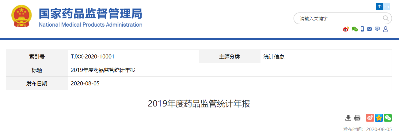8月5日,國(guó)家藥監(jiān)局公布了《2019年度藥品監(jiān)管統(tǒng)計(jì)年報(bào)》(以下簡(jiǎn)稱《年報(bào)》)。