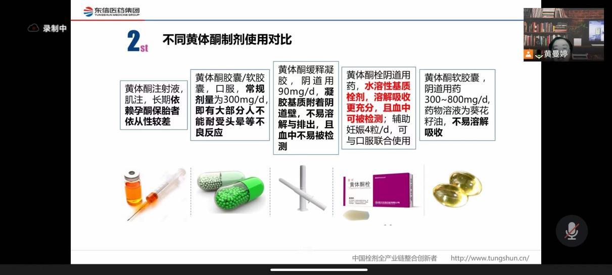 講解過程中,黃主任詳細(xì)的闡述了孕酮栓與其他孕酮制劑的區(qū)別和優(yōu)勢,并對栓劑與其他制劑的劑量換算關(guān)系作了講解,最后,黃主任結(jié)合自身在臨床上的案例著重強(qiáng)調(diào)了黃體酮栓在婦科3個(gè)主要適應(yīng)癥上的重點(diǎn)應(yīng)用。