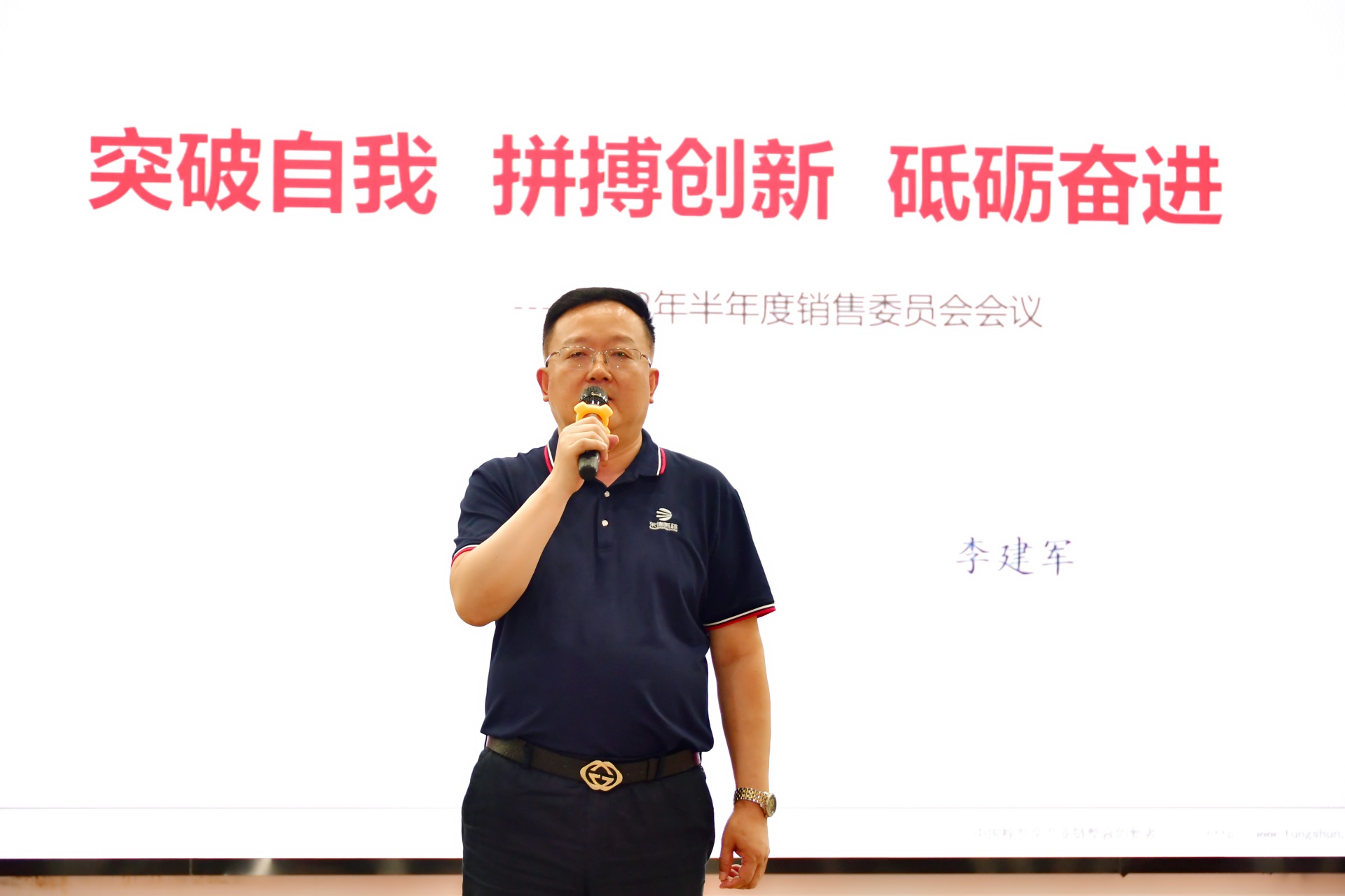接下來,東信醫(yī)藥常務(wù)副總經(jīng)理、銷售委員會(huì)主任李建軍先生作總結(jié)發(fā)言。李總?cè)娣治隽藮|信醫(yī)藥營銷團(tuán)隊(duì)在上半年的工作遇到的困難、存在的問題和取得的成績,對下半年的工作提出了具體的要求。他勉勵(lì)各營銷團(tuán)隊(duì)繼續(xù)發(fā)揚(yáng)東信鐵軍精神,突破自我,拼搏創(chuàng)新,砥礪奮進(jìn);要求各銷售部門、各省區(qū)結(jié)合2022年的市場規(guī)劃,耐心、細(xì)致的做好下半年的各項(xiàng)營銷工作,全面推進(jìn)“五大工程”,抓好精細(xì)化管理,重新整合市場資源,創(chuàng)新銷售模式,創(chuàng)新推廣手段,全力以赴完成全年的營銷目標(biāo)。