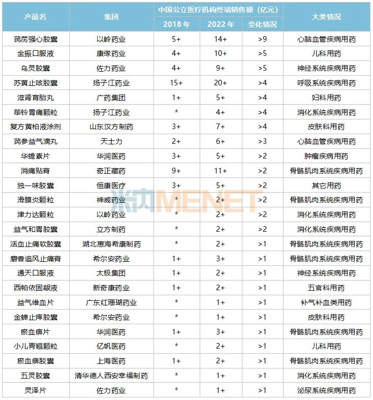 數(shù)據(jù)顯示,2018版國家基藥目錄新增的獨(dú)家中成藥中有25個(gè)產(chǎn)品2022年在中國公立醫(yī)療機(jī)構(gòu)終端的銷售額比進(jìn)入目錄前(2018年)增長超過1億元。