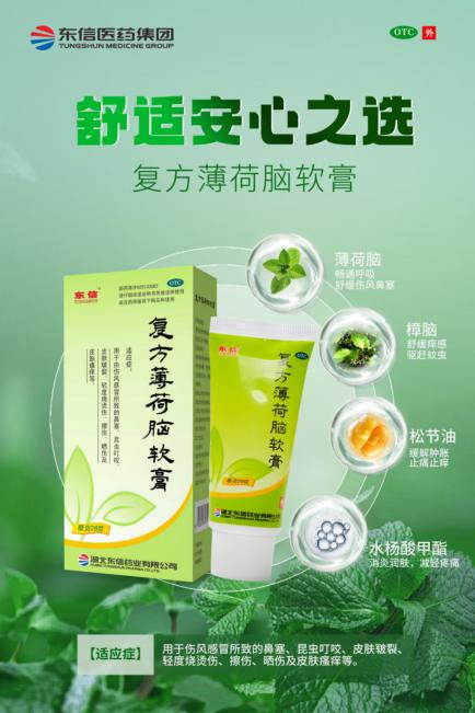 復方薄荷腦軟膏由湖北東信藥業(yè)生產,其成分不含激素,主要成分為薄荷腦、水楊酸甲酯、樟腦、松節(jié)油,輔料為桉油、白凡士林。可用于由傷風感冒引起的鼻塞,昆蟲叮咬,皮膚皸裂,輕度燒燙傷,擦傷,曬傷及皮膚瘙癢等。薄荷腦外用具有清涼的感覺,可以消炎,止痛,止癢,促進血液循環(huán),減輕浮腫。水楊酸甲酯可消炎鎮(zhèn)痛;樟腦可消腫止痛;松節(jié)油穿透力強,可加快血液循環(huán),緩解腫脹;輔料桉油也具有驅蟲作用。因此在皮膚沒有破潰的時候,復方薄荷腦軟膏可用于輕度的燒傷燙傷曬傷,有助于消除腫脹,緩解疼痛。