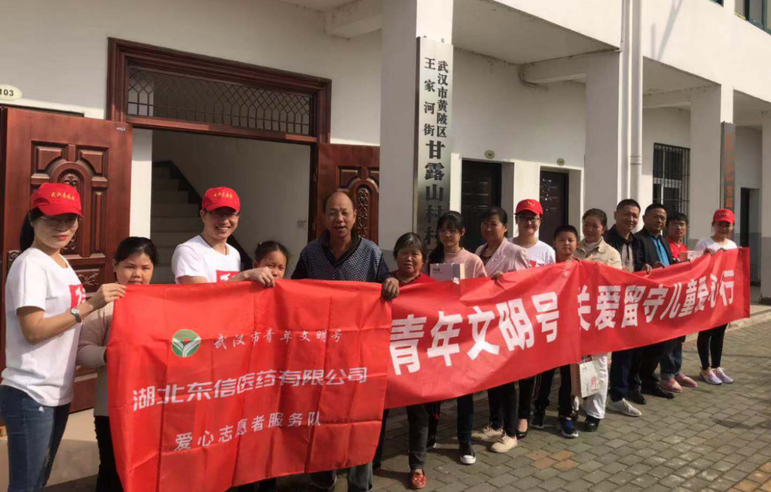 11月2日,湖北東信醫(yī)藥有限公司共青團(tuán)青年文明號(hào),在第六個(gè)全國(guó)“扶貧日”主題活動(dòng)期間,走進(jìn)武漢市黃陂區(qū)王家河街甘露山村,看望慰問(wèn)該村貧困留守兒童。