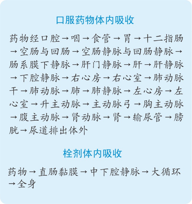 口服藥物與栓劑體內(nèi)吸收對比見下圖