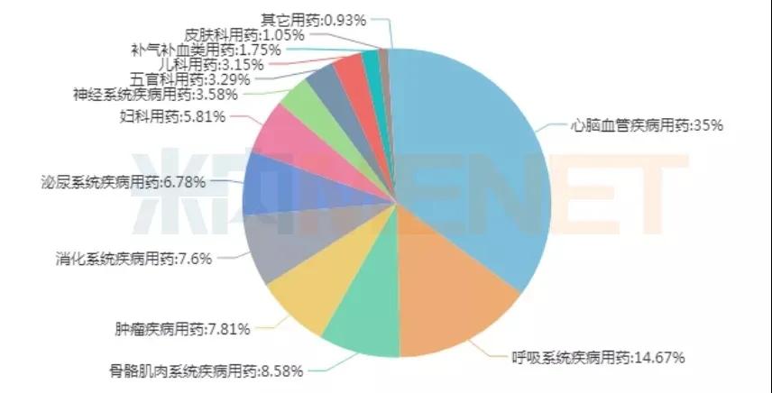 品類方面,中成藥涵蓋13個治療大類,心腦血管疾病用藥為中成藥市場第一暢銷大類,占據(jù)35%的市場份額,呼吸系統(tǒng)疾病用藥占比14.67%,骨骼肌肉系統(tǒng)用藥占比8.58%。