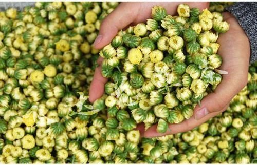 胎菊古時(shí)曾作貢品,其真品干花形態(tài)整齊,花瓣內(nèi)斂蜷曲,色澤金黃,花蜜味香甜濃郁,花蕾全部開(kāi)放后采摘下來(lái)的就是杭白菊。