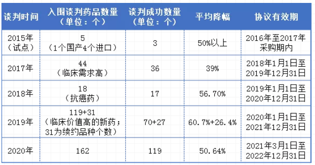 醫(yī)保談判歷年概況表