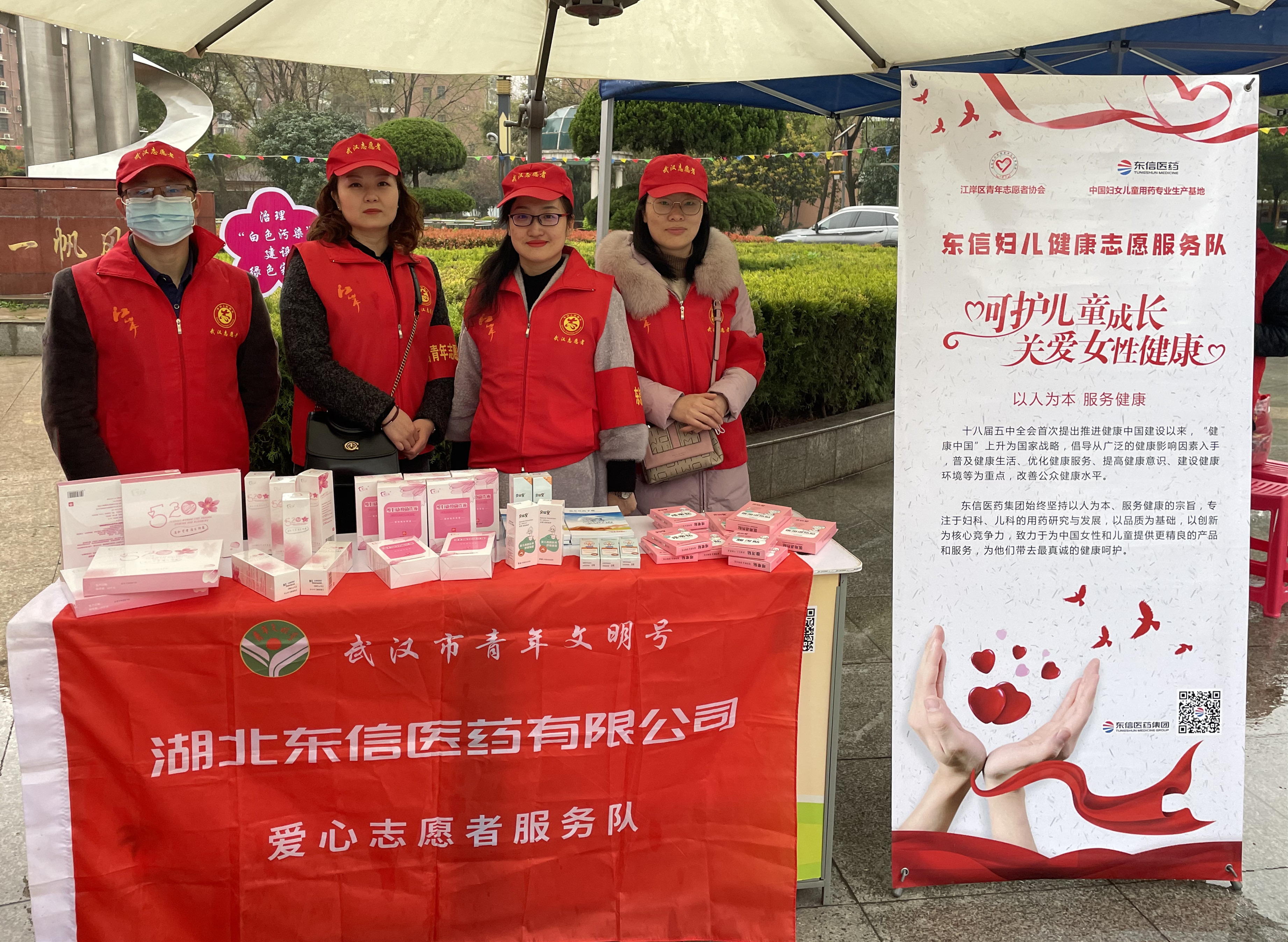 春風(fēng)送暖,愛心送情。2021年3月5日是全國第58個學(xué)雷鋒紀(jì)念日,湖北東信醫(yī)藥有限公司聯(lián)合江岸區(qū)志愿者協(xié)會,組織愛心志愿服務(wù)隊(duì)在江北社區(qū)錦湖花園和漢口城市廣場設(shè)立展臺,為社區(qū)居民宣講婦女兒童健康知識,普及安全用藥理念。