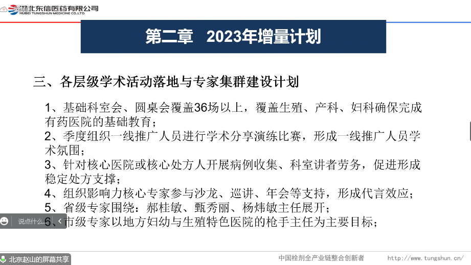 會議期間,各省區(qū)經(jīng)理聯(lián)席主持各戰(zhàn)略合作伙伴,就2023年醫(yī)院開發(fā)、銷售任務(wù)、學(xué)術(shù)活動執(zhí)行、核心專家集群建設(shè)、資金投入等方面作出明確規(guī)劃,努力打造產(chǎn)品知名度,提升品牌影響力,維護(hù)市場秩序,提升醫(yī)院覆蓋率,爭取在2023年取得高質(zhì)量發(fā)展。未來,東信將攜手各戰(zhàn)略合作伙伴,攜手共進(jìn),互利共贏,共同開啟東信專業(yè)化學(xué)術(shù)推廣新紀(jì)元。