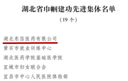3月7日,湖北省城鄉(xiāng)婦女崗位建功活動領(lǐng)導小組印發(fā)決定,表彰169個湖北省巾幗文明崗、湖北省巾幗建功標兵、湖北省巾幗建功先進集體。其中,湖北東信醫(yī)藥有限公司榮獲“湖北省巾幗建功先進集體”稱號。