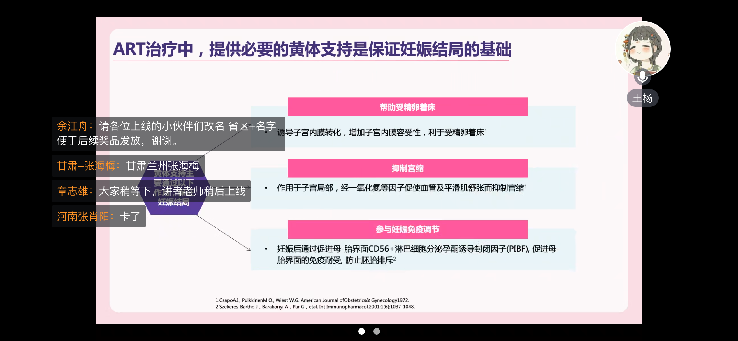 上海曙光醫(yī)院生殖科的王楊老師帶來了《黃體支持的前世今生與ART中黃體支持臨床藥物的選擇》,王老師先介紹了黃體支持在ART中的必要性,可以提高持續(xù)妊娠率以及活產(chǎn)率、改善妊娠結(jié)局。其次介紹了黃體酮近代以來的發(fā)展史,并通過黃體酮栓與陰道用凝膠的臨床觀察得出結(jié)論:ART黃體支持中,黃體酮栓有更高的著床率、妊娠率以及更低流產(chǎn)率。