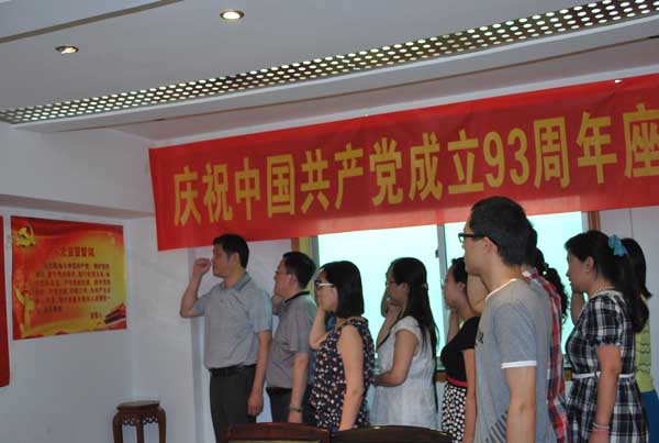 2014年7月1日下午,湖北東信醫(yī)藥有限公司黨支部組織了慶祝中國(guó)共產(chǎn)黨成立93周年黨員座談會(huì)。會(huì)議由公司黨支部書(shū)記閔超同志主持。會(huì)上特邀東信醫(yī)藥集團(tuán)董事長(zhǎng)田南希女士進(jìn)行了講話。田董首先祝工作在各條戰(zhàn)線上的全體黨員節(jié)日快樂(lè),并鼓勵(lì)全體黨員同志堅(jiān)定思想信念,牢記責(zé)任使命,勇于肩負(fù)自己的職責(zé),通過(guò)黨群建設(shè)搭建一個(gè)平行的橋梁,服務(wù)、關(guān)心奮戰(zhàn)在一線的員工,同他們談心,及時(shí)了解員工動(dòng)態(tài)并給予及時(shí)幫助。同時(shí)要求黨員同志對(duì)黨建工作要抱有十分的熱情,愛(ài)崗敬業(yè),積極傳遞正能量,以良好的作風(fēng)把員工牢牢凝聚在一起。