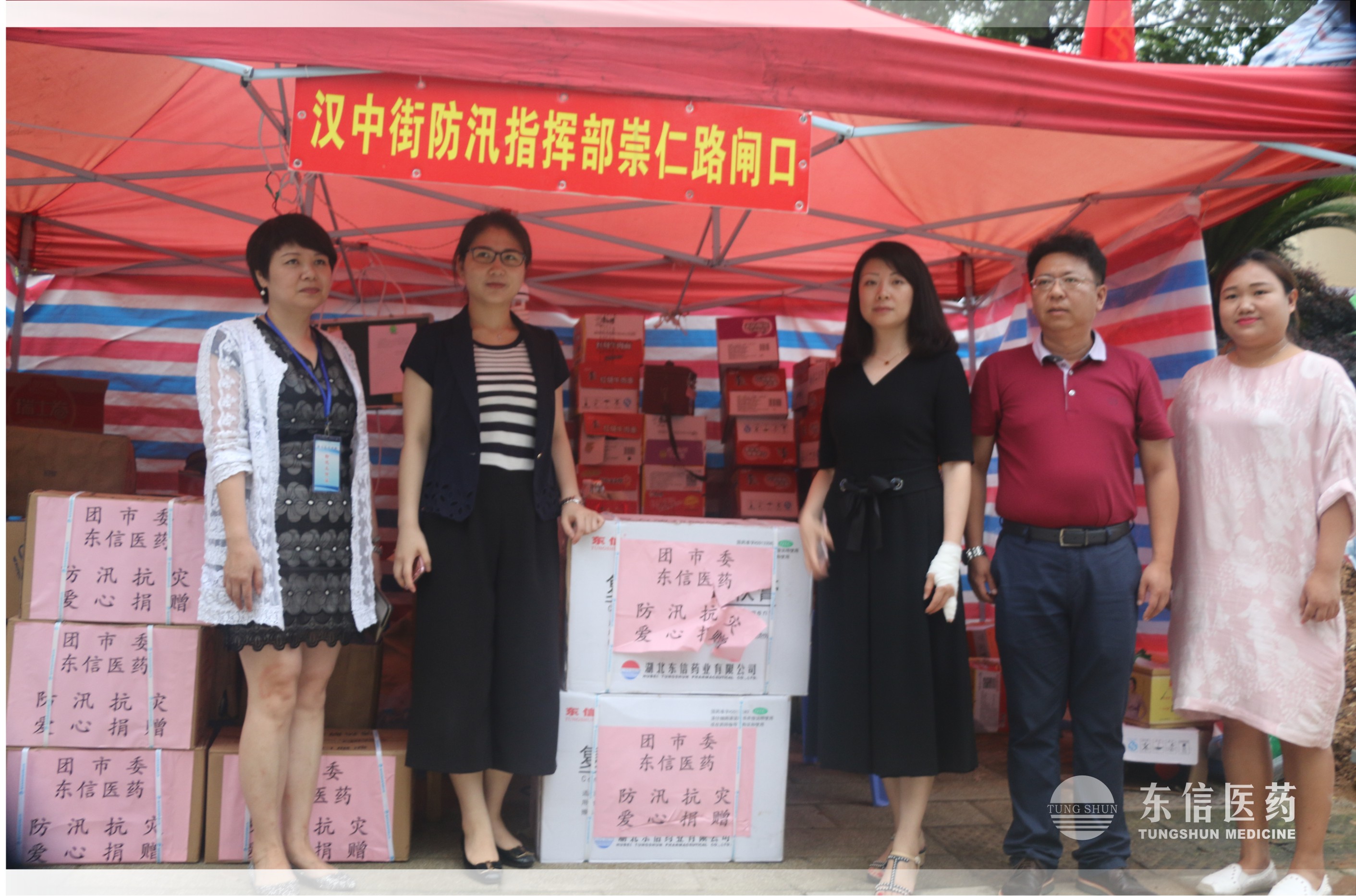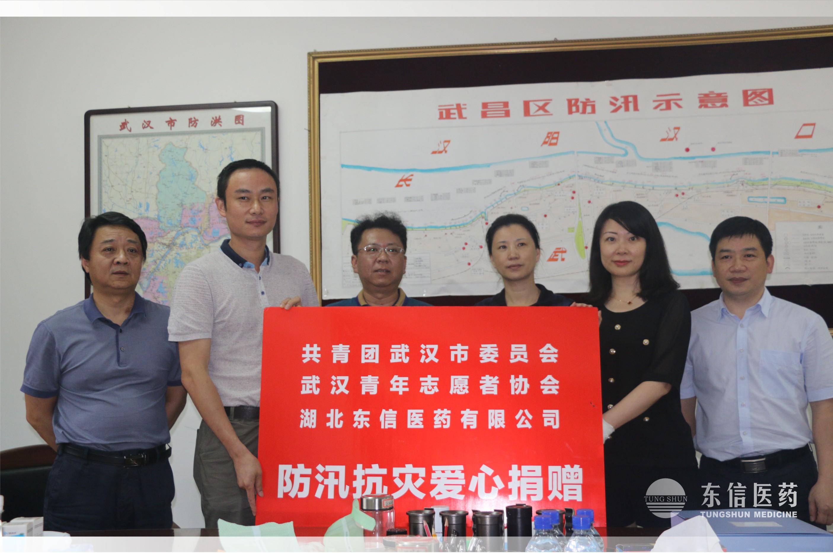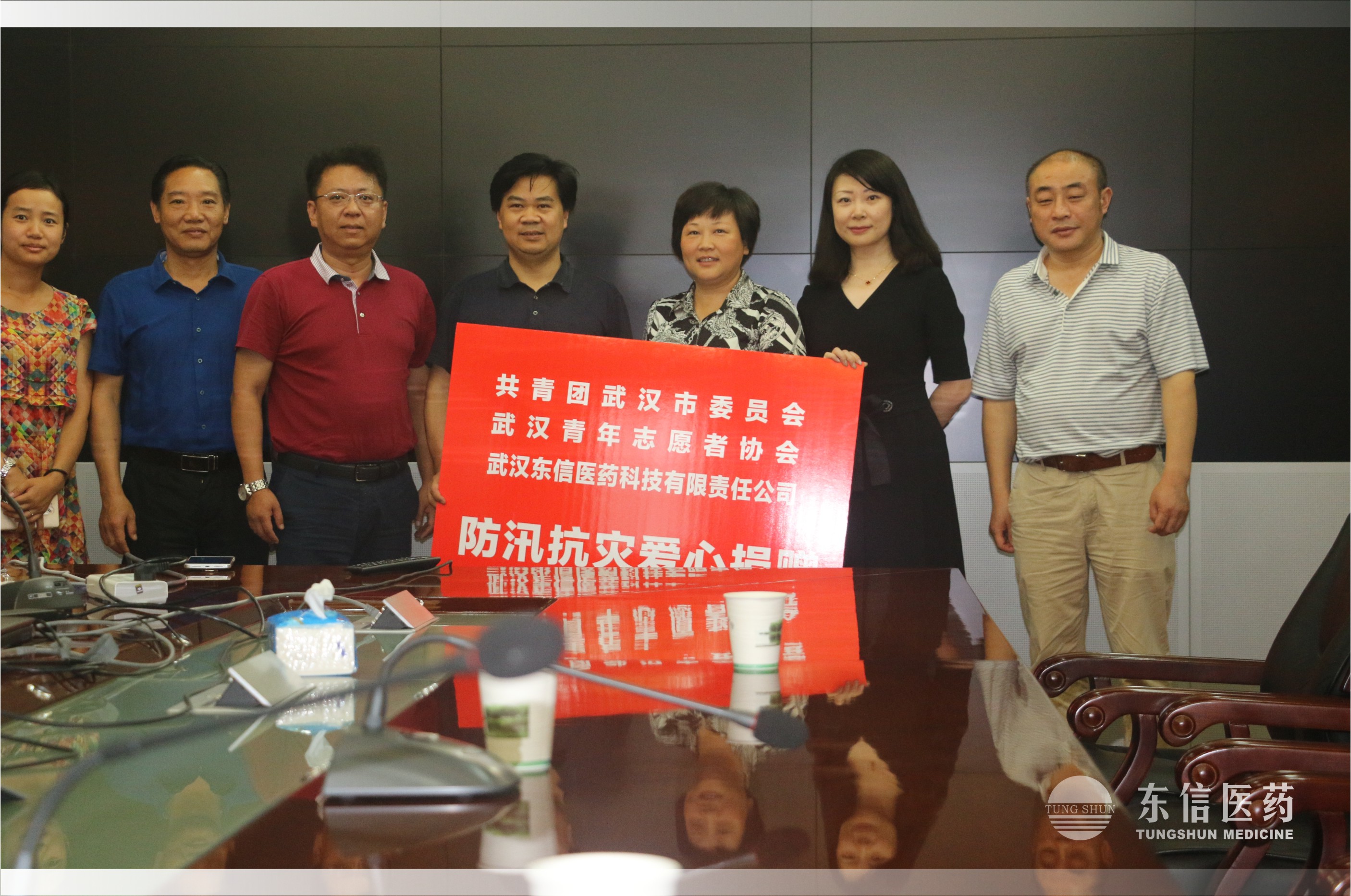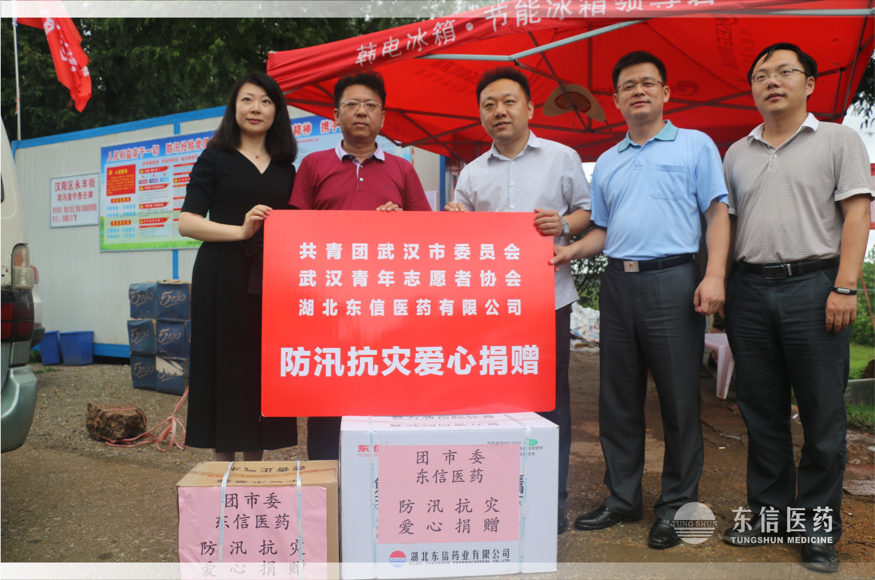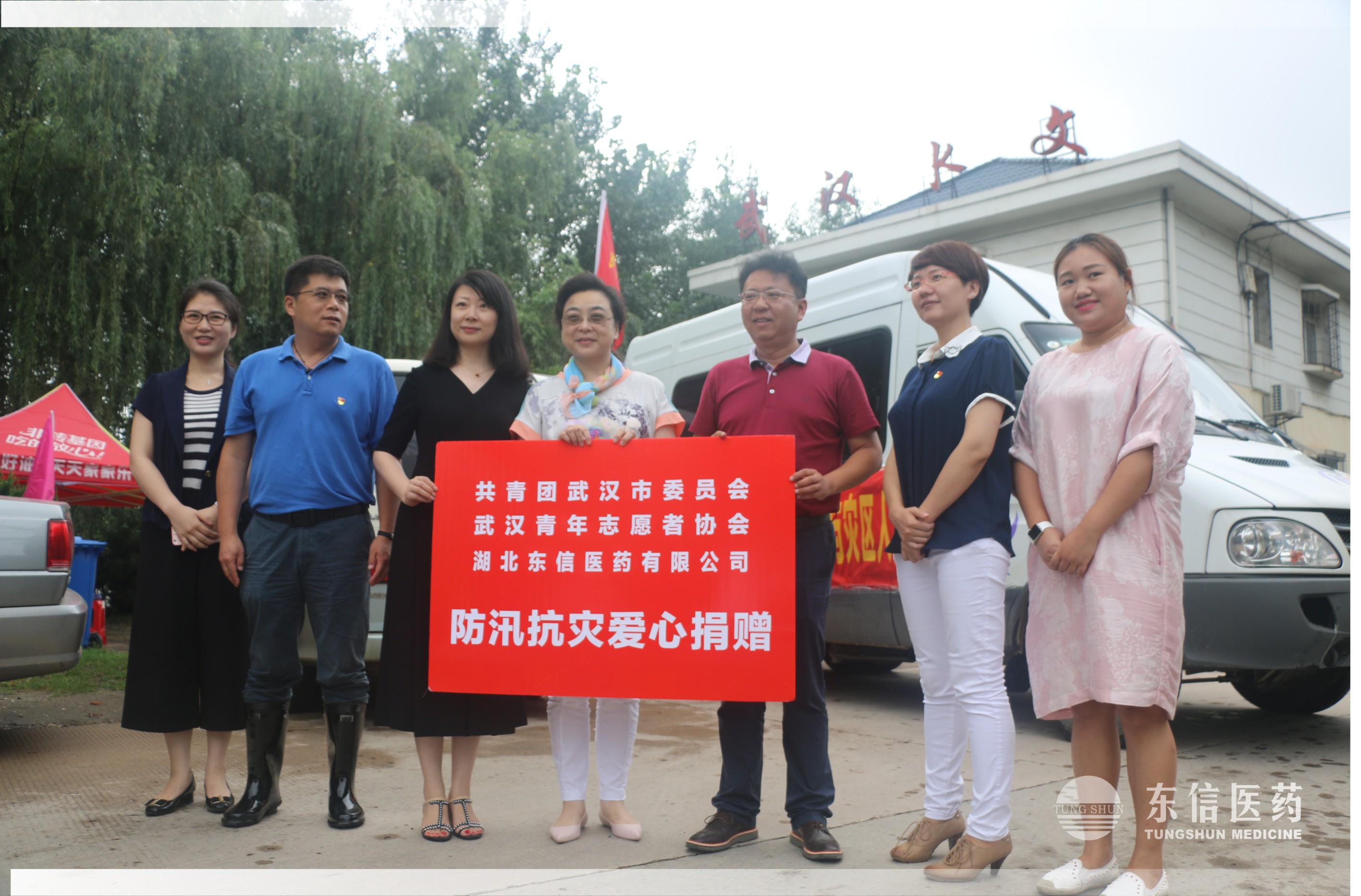 7月15日,共青團武漢市委、武漢市青年志愿者協(xié)會攜手東信醫(yī)藥集團向蔡甸災(zāi)區(qū)、漢陽區(qū)永豐街、硚口區(qū)易家街、硚口區(qū)漢中街、武昌區(qū)抗洪一線人員捐贈價值20萬元的防署降溫藥品。