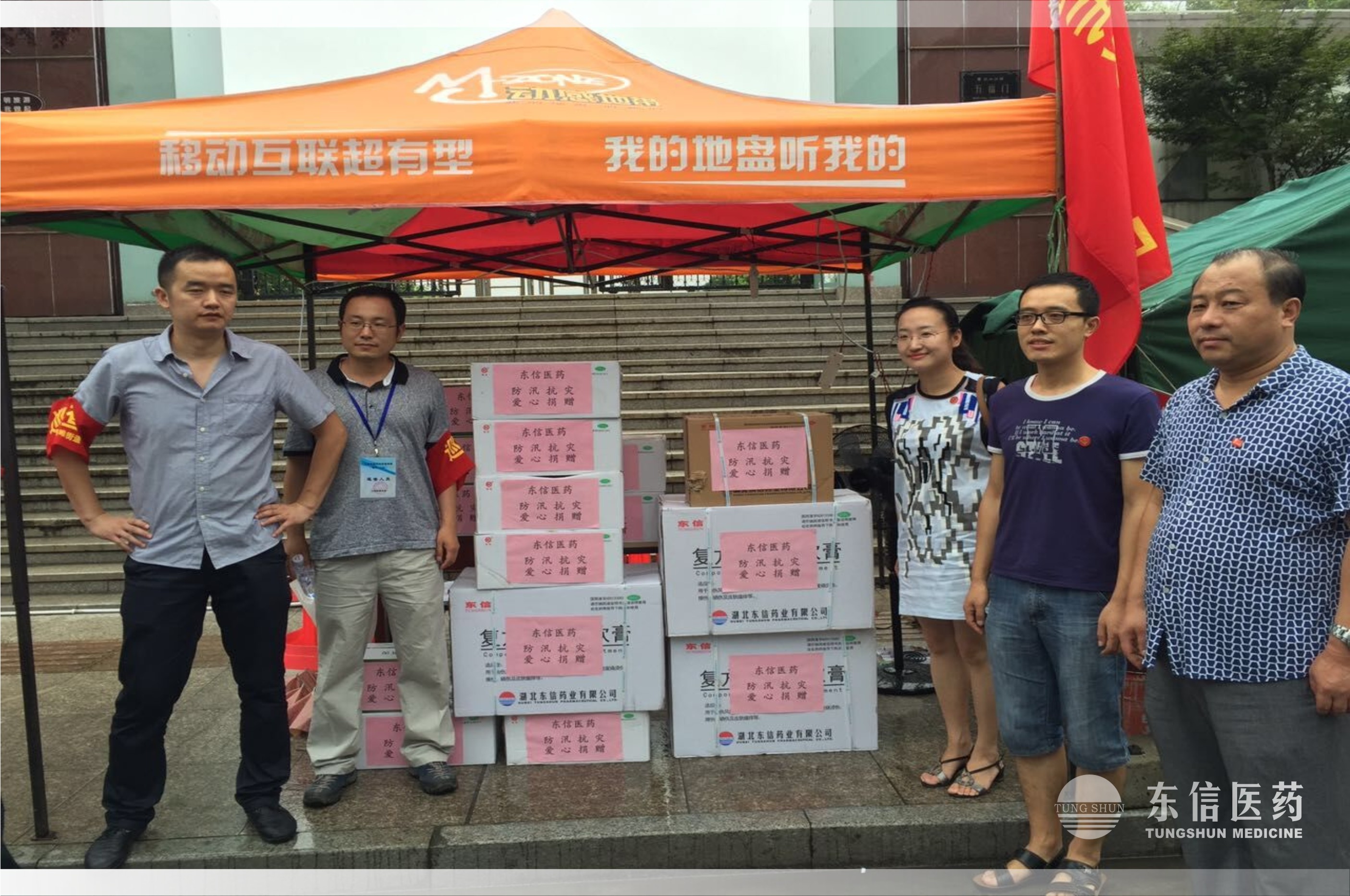 東信醫(yī)藥集團情系災(zāi)區(qū),得知洪澇災(zāi)害造成了嚴重損失,災(zāi)民面臨突發(fā)疾病的威脅,抗洪一線人員在災(zāi)區(qū)連續(xù)奮戰(zhàn),出現(xiàn)中暑現(xiàn)象急需抗暑藥品后,東信醫(yī)藥集團啟動應(yīng)急機制,打造綠色通道,迅速調(diào)配藥品,連續(xù)為新洲、蔡甸、武漢抗洪一線捐贈防署降溫藥品。東信醫(yī)藥集團在這次抗洪救災(zāi)行動中,共計為災(zāi)區(qū)捐贈近50萬元的防暑降溫藥品。