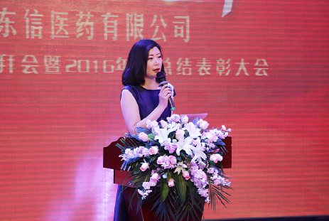 團(tuán)拜會(huì)現(xiàn)場張燈結(jié)彩,春意盎然。年會(huì)在熱鬧的舞獅表演和歡樂的舞蹈《中國歌最美》后正式拉開序幕,東信醫(yī)藥有限公司董事長田南希女士致新年賀詞,歡迎凱旋歸來的營銷將士們和參加新春團(tuán)拜會(huì)的全體東信同仁。田董在致辭中回顧了2016年東信取得的成績,并對(duì)2017年東信的發(fā)展提出了新的要求,向全體東信人致以新春的問候。