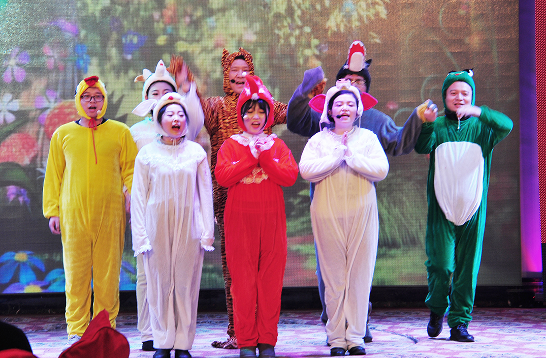 銷售部帶來的合唱《跟著銷售委員會(huì)走》自填歌詞,指揮演唱鏗鏘有力,用小合唱的方式唱出了東信銷售2016年的奮斗與努力、2017年的展望和目標(biāo)。