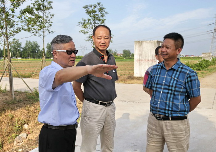 東信藥業(yè)總經(jīng)理田立智(左一)參觀長(zhǎng)江大學(xué)植物(中藥材)種植培育基地
