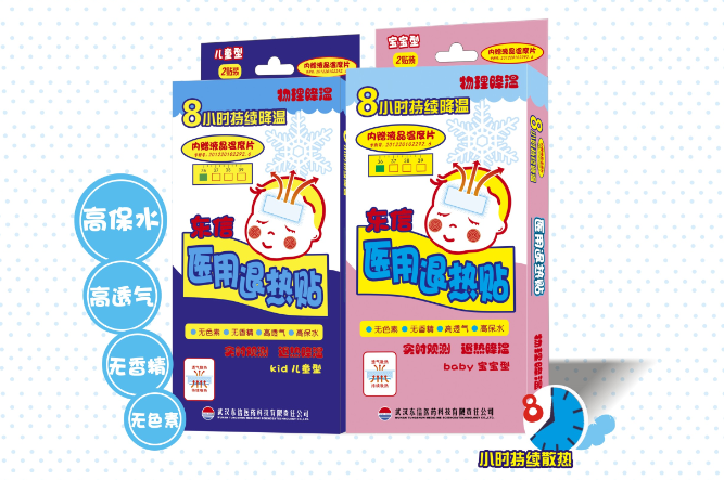 其相較于傳統(tǒng)的退熱方法具有使用方法簡單,可長時間使用,減少給次的劑量與次數(shù),同時由于退熱貼劑本身是一種外用藥,也就是除于物理降溫的一種,避免了“是藥三分毒”的威脅,特別是可減少傳統(tǒng)退燒藥對肝臟的損害。