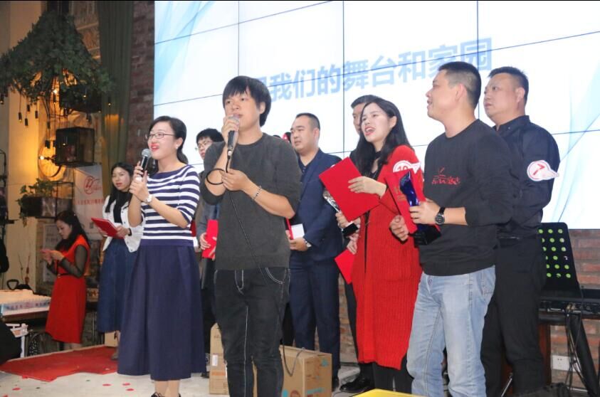田董和陳總帶領(lǐng)大家點(diǎn)燃了生日蠟燭