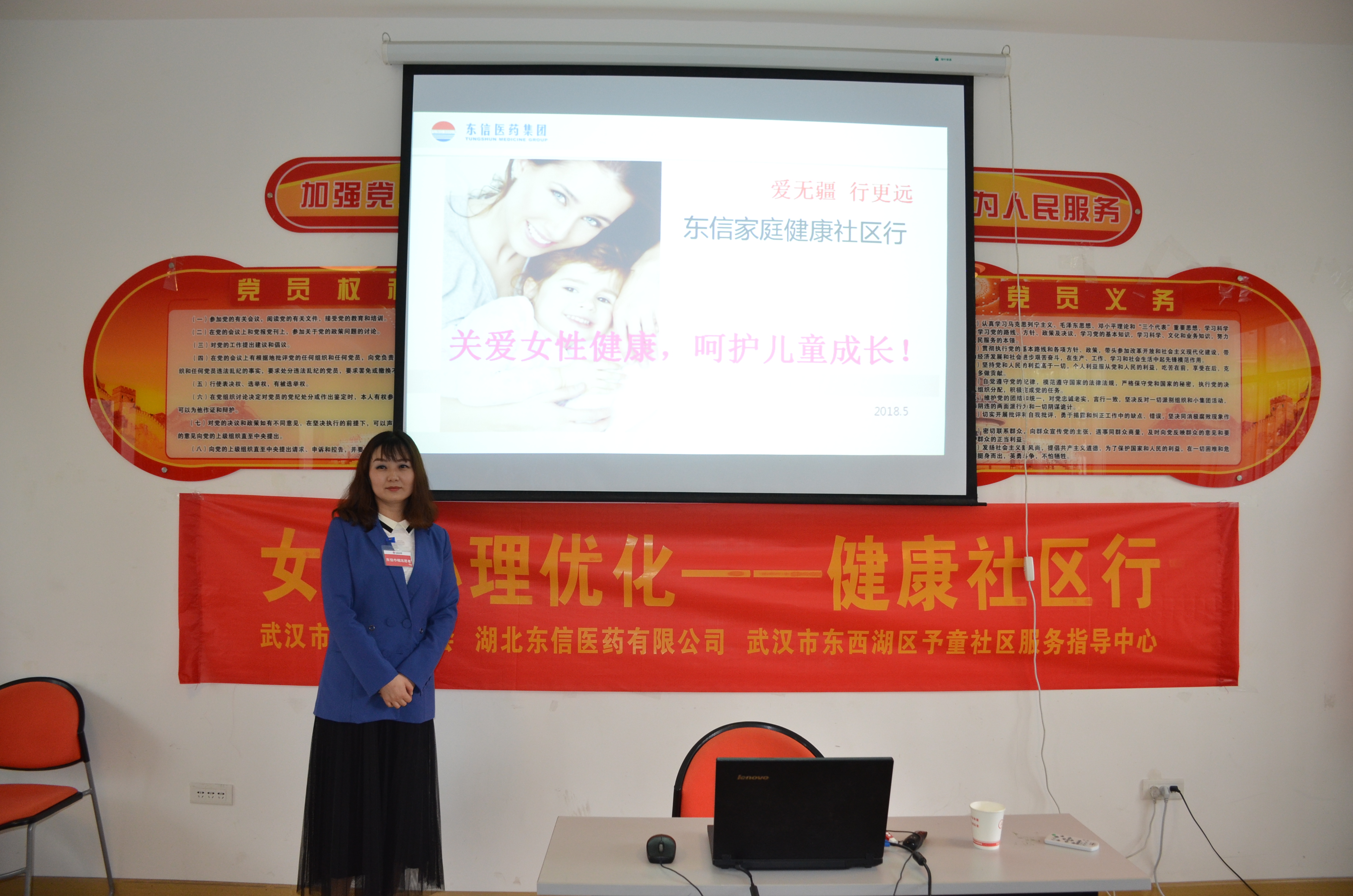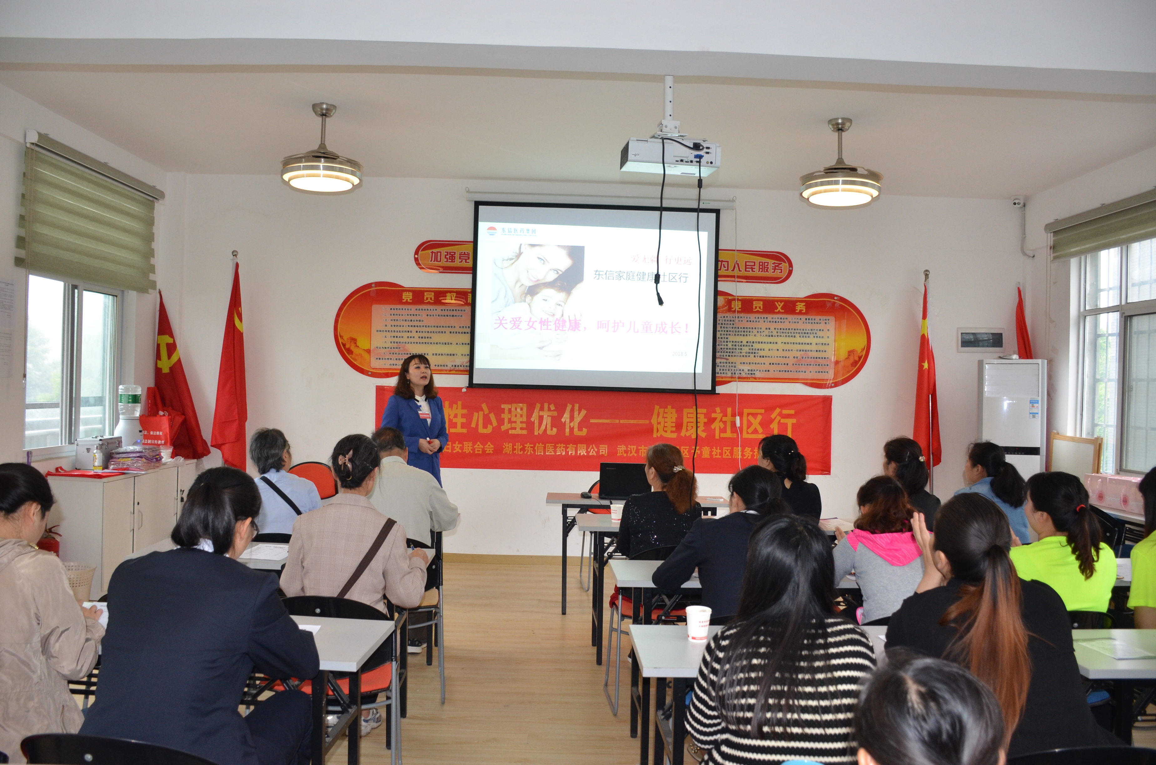 5月11日,東信醫(yī)藥集團(tuán)聯(lián)合武漢市婦女聯(lián)合會(huì)、予童社區(qū)服務(wù)指導(dǎo)中心在武漢市東西湖花城社區(qū)服務(wù)指導(dǎo)中心開(kāi)展了“女性心理優(yōu)化——健康社區(qū)行”公益活動(dòng)。