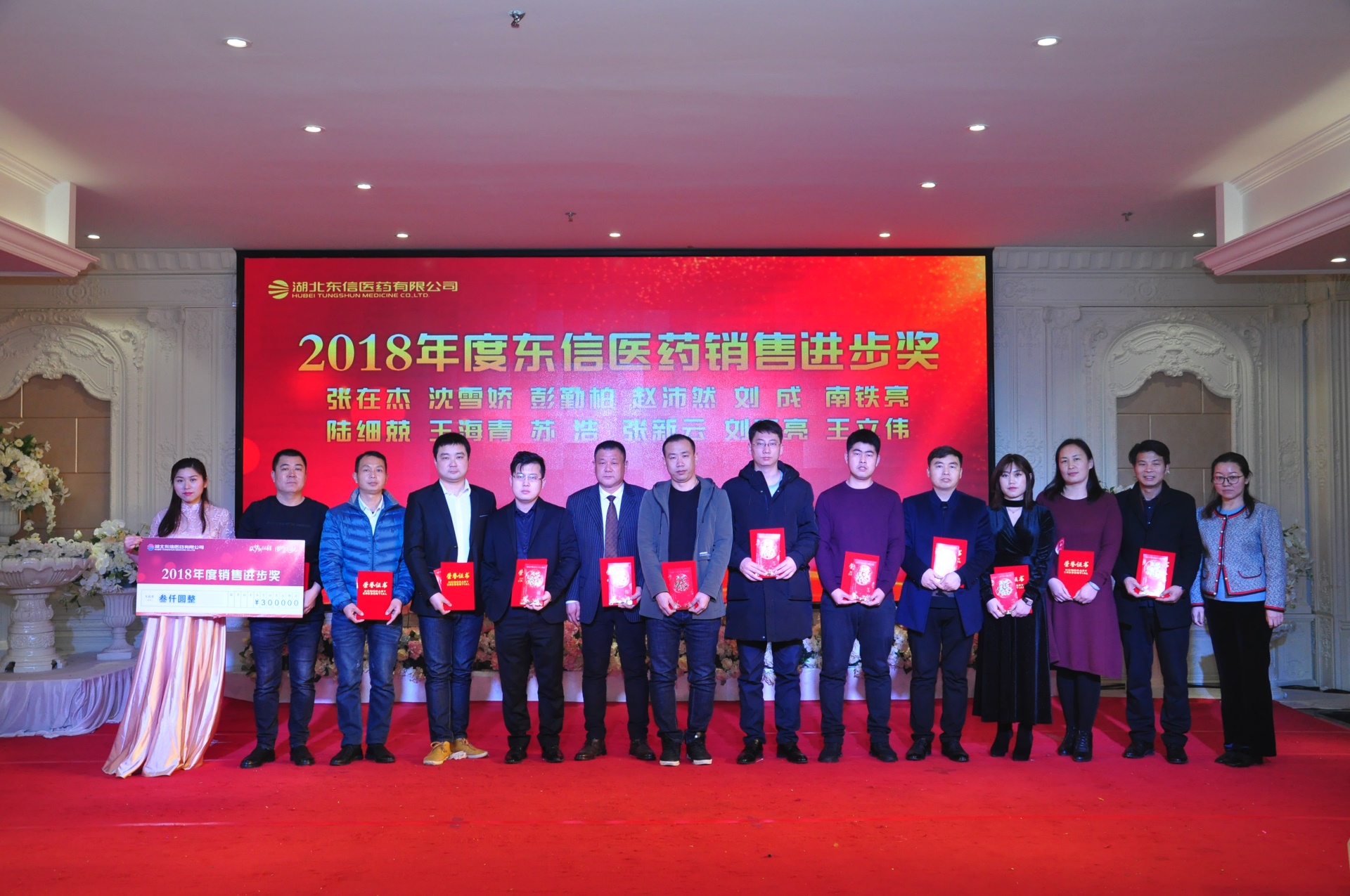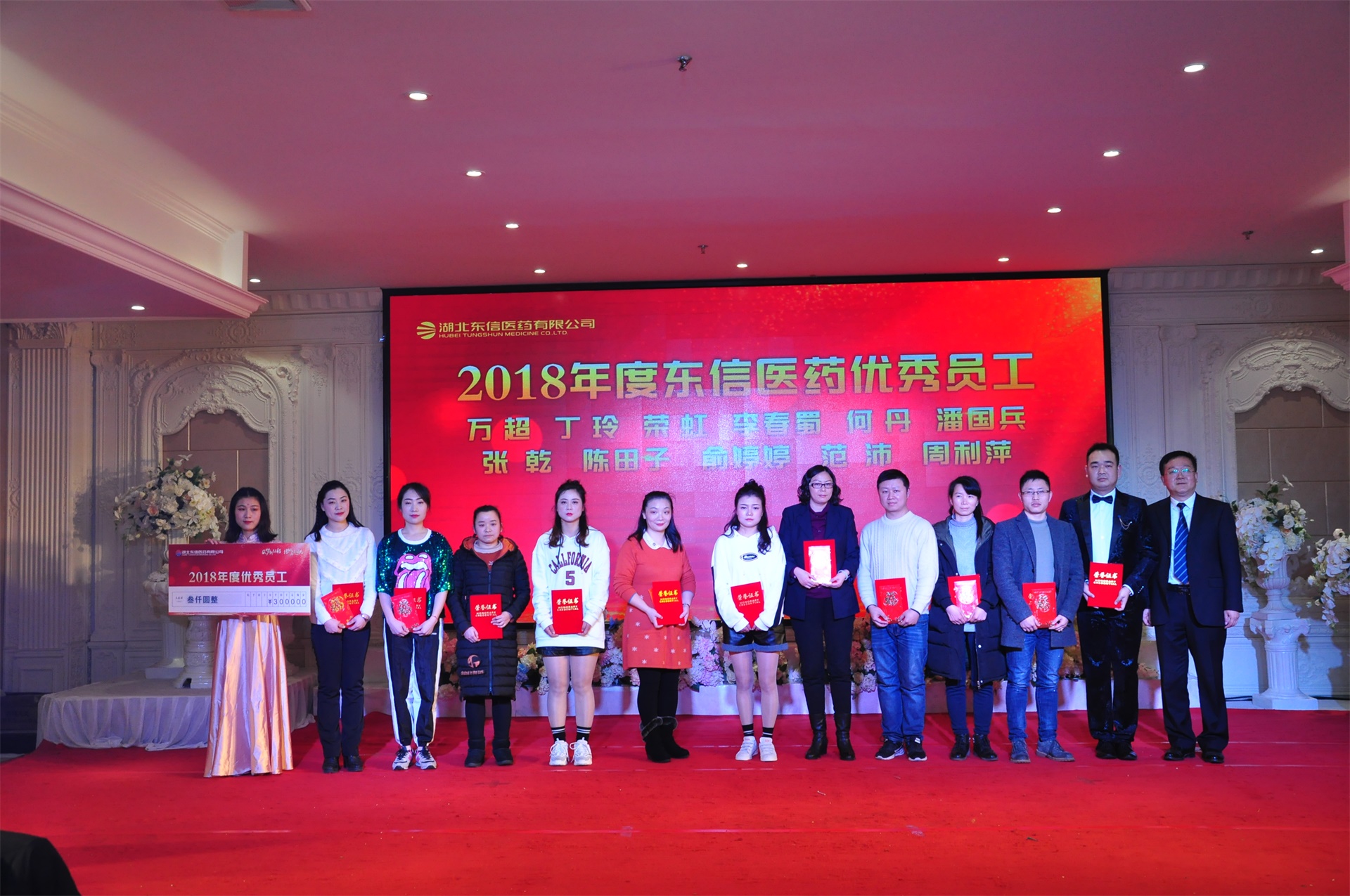 丹鳳呈祥龍獻(xiàn)瑞,金豬賀歲杏迎春。2019年1月29日,湖北東信醫(yī)藥有限公司全體員工相聚江城瑞頤大酒店,隆重舉辦了“筑夢新征程,揚(yáng)帆再起航——東信醫(yī)藥2019年新春團(tuán)拜會(huì)暨 2018年度總結(jié)表彰大會(huì)”,載歌載舞,表彰先進(jìn),喜迎新春。