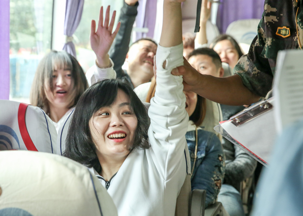 前往紅安的路途中,東信醫(yī)藥的家人們在車上開展知識競賽問答環(huán)節(jié),這個環(huán)節(jié)的知識點(diǎn)分為愛國、軍運(yùn)、企業(yè)文化、產(chǎn)品知識四個部分,知識問答環(huán)節(jié)賺取的積分會影響到大家晚餐的質(zhì)量,每個人都積極參與,踴躍舉手,氣氛異?;钴S。