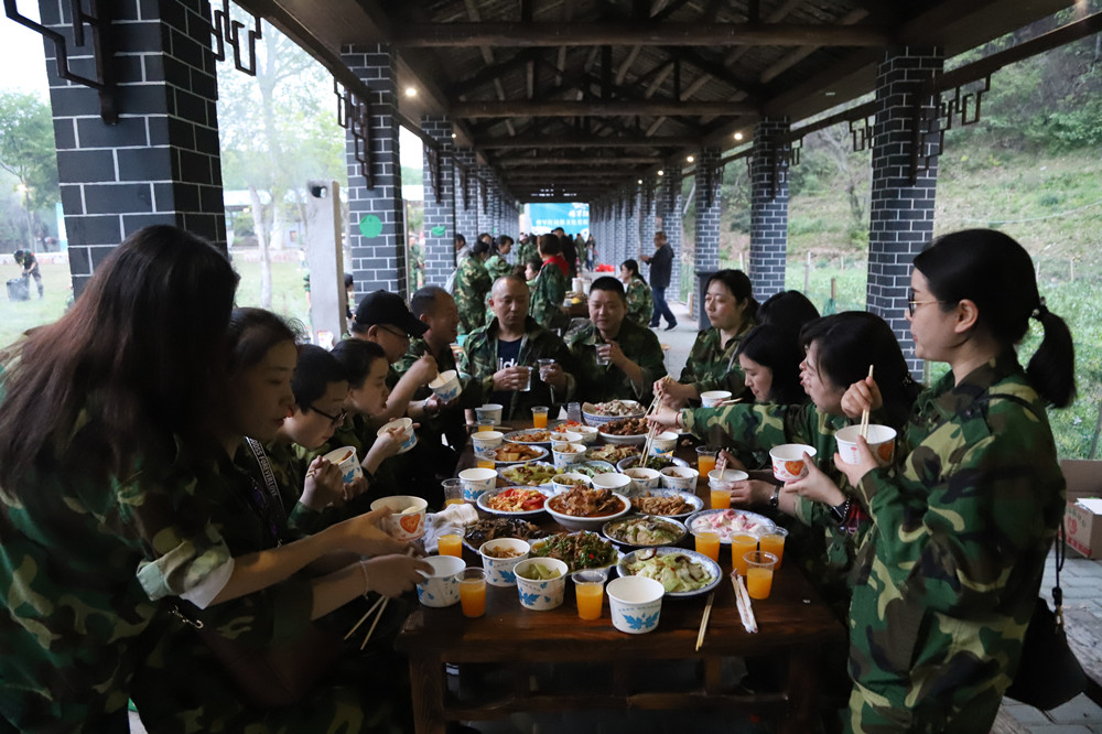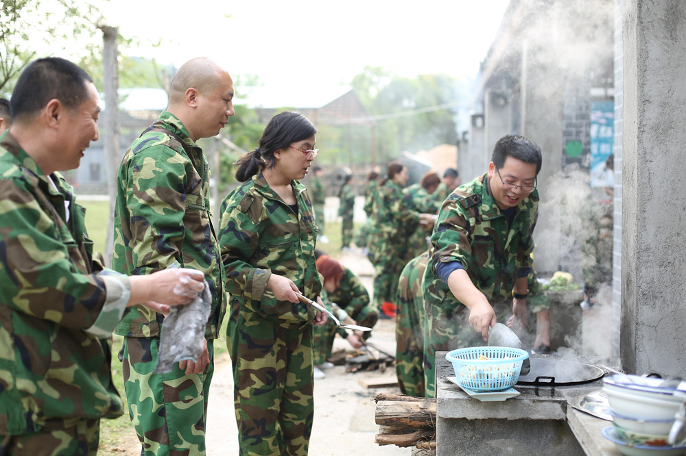 第三站是埋鍋造飯環(huán)節(jié),各組拿著知識競賽和軍運(yùn)項(xiàng)目大比拼賺取的積分領(lǐng)取到了相應(yīng)的現(xiàn)金,大家分工合作,團(tuán)結(jié)協(xié)作,分組采購食材、生火做飯,每個環(huán)節(jié)有序展開,有人生火,有人切菜,大家各司其職,各負(fù)其責(zé)。