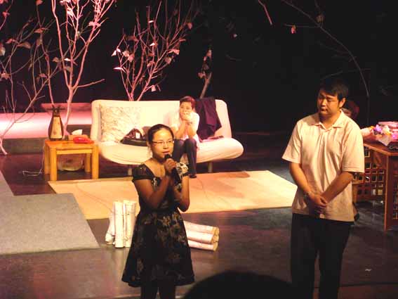 21點(diǎn)50分,話劇演出結(jié)束了。讓大家驚喜的是,該劇的原作者,知名作家方方,該劇的導(dǎo)演當(dāng)晚也親臨劇場(chǎng),與觀眾們進(jìn)行了現(xiàn)場(chǎng)交流?!按蠹液?,我是來(lái)自湖北東信醫(yī)藥有限公司的汪麗萍……”互動(dòng)過(guò)程中,女職工們對(duì)公司巧妙的廣告宣傳,讓在座的觀眾們開(kāi)懷一笑的同時(shí),更感受到力克員工對(duì)她的熱愛(ài),而臺(tái)上熱烈的掌聲更是對(duì)東信女職工——這個(gè)團(tuán)結(jié)集體的最好詮釋。