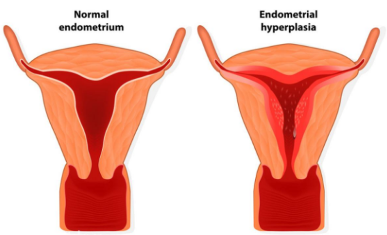 子宮內(nèi)膜不僅會轉(zhuǎn)移、種植,還會增生——在各種原因影響下引起卵巢無排卵,內(nèi)分泌紊亂,子宮內(nèi)膜缺乏孕激素對抗。長期受雌激素作用,發(fā)生無周期性脫落、持續(xù)性增長,使得月經(jīng)周期延長,甚至出現(xiàn)淋漓不盡出血的癥狀,而更危險的是,非典型子宮內(nèi)膜增生有一定的癌變傾向!